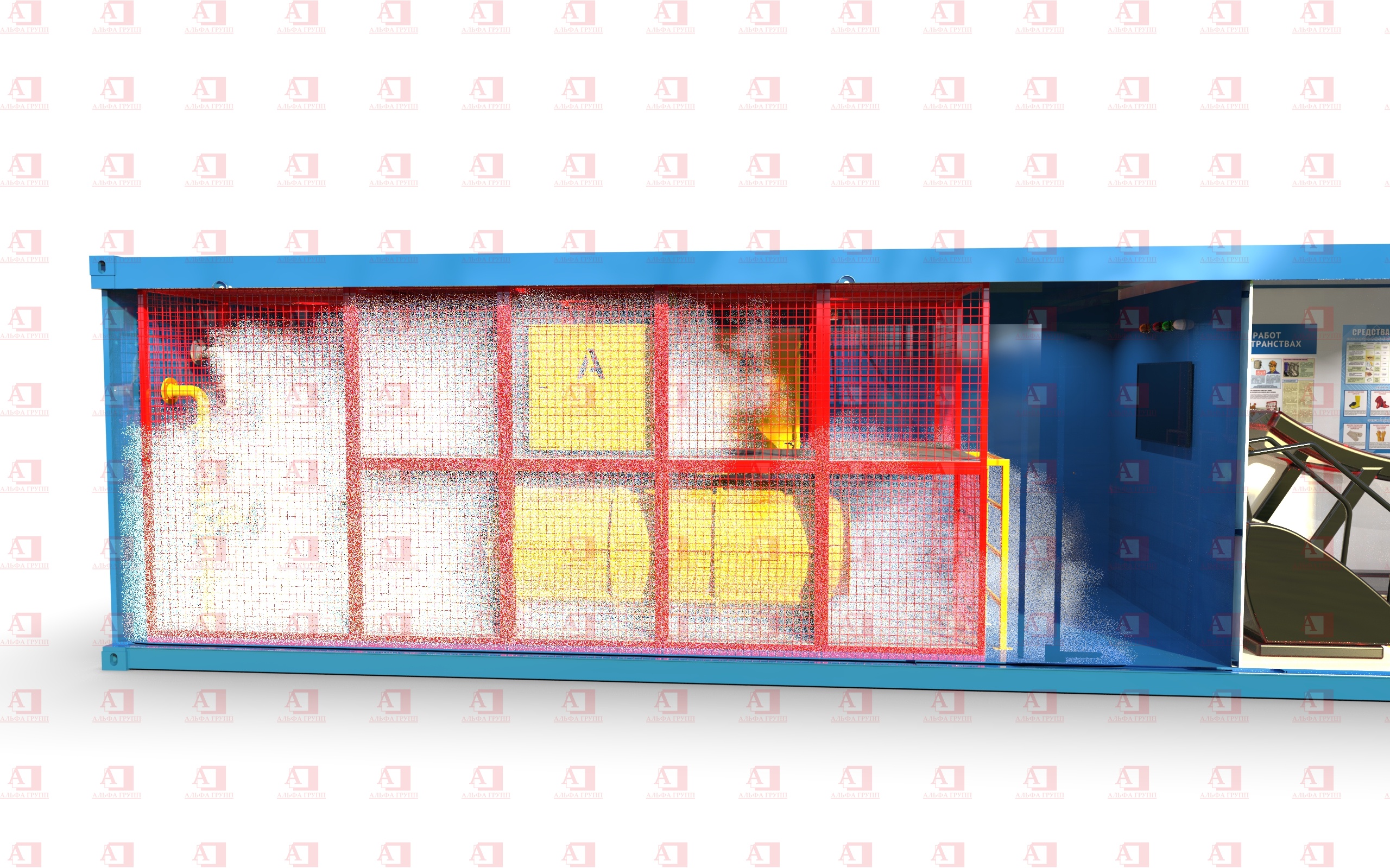 1. Зона управления: Централизованный пункт управления всем комплексом. Оборудована компьютеризированным пультом для точного контроля и программирования параметров тренировки (температура, плотность и скорость подачи дыма, длительность этапов). Обеспечивает визуальный мониторинг происходящего в зонах через систему видеонаблюдения, голосовую связь с обучающимися и мгновенную активацию всех аварийных протоколов.